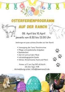 Das Osterferienprogramm der TEAM Ranch jeweils vom 08. – 10.04.2026 von 08:30 – 12:00 Uhr